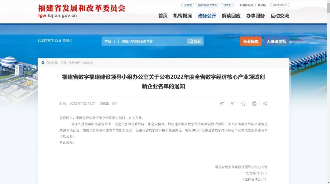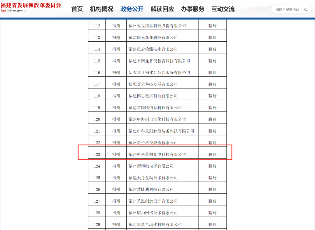 2022年7月22日,福建省数字福建建设领导小组办公室关于公布2022年度全省数字经济核心产业领域创新企业名单的通知,福建中科芯源光电科技有限公司获评福建省数字经济核心产业领域“瞪羚企业”。